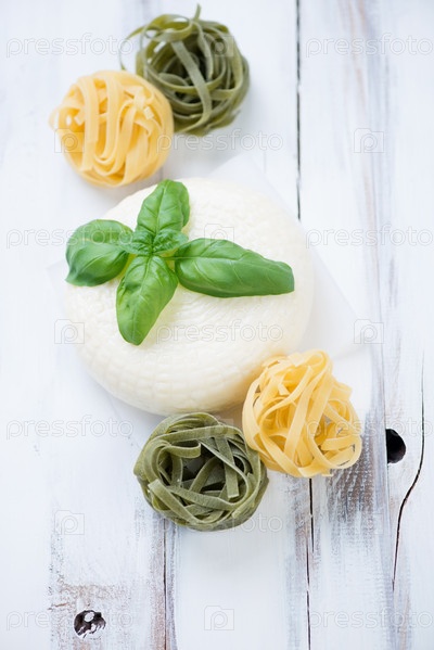 Сыр, тальятелле и базилик
