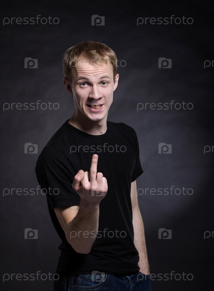 Мужчина показывает средний палец