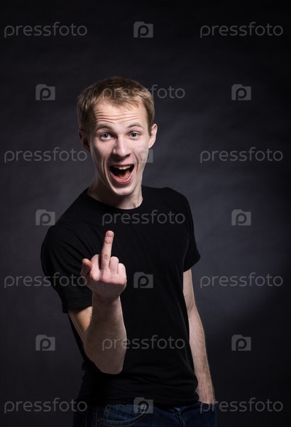 Мужчина показывает средний палец