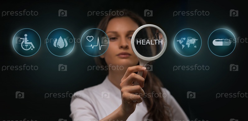 Врач работает с виртуальным экраном