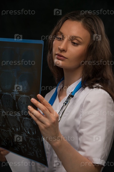 Доктор смотрит на МРТ мозга