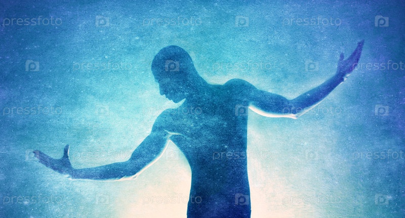 Силуэт парня на синем фоне