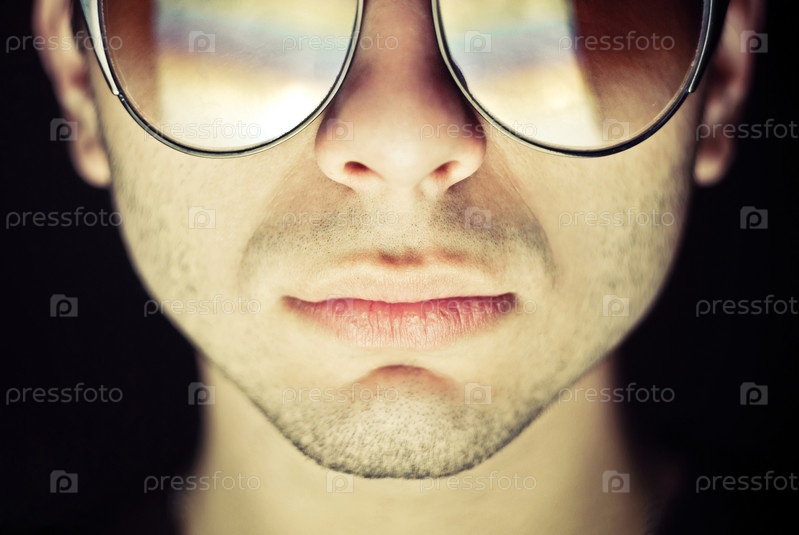 Портрет парня в темных очках на темном фоне