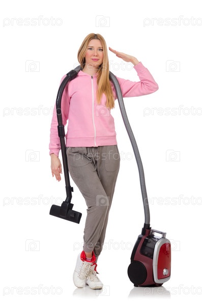 Молодая женщина с пылесосом