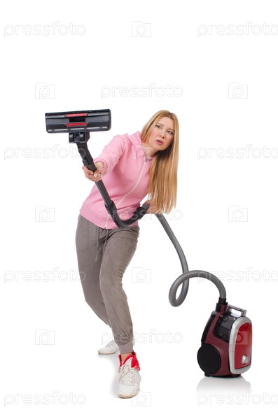 Молодая женщина с пылесосом