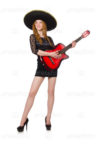 Женщина в сомбреро с гитарой