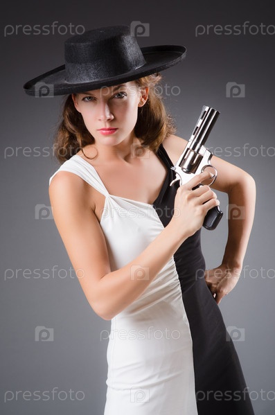 Женщина с пистолетом на темном фоне