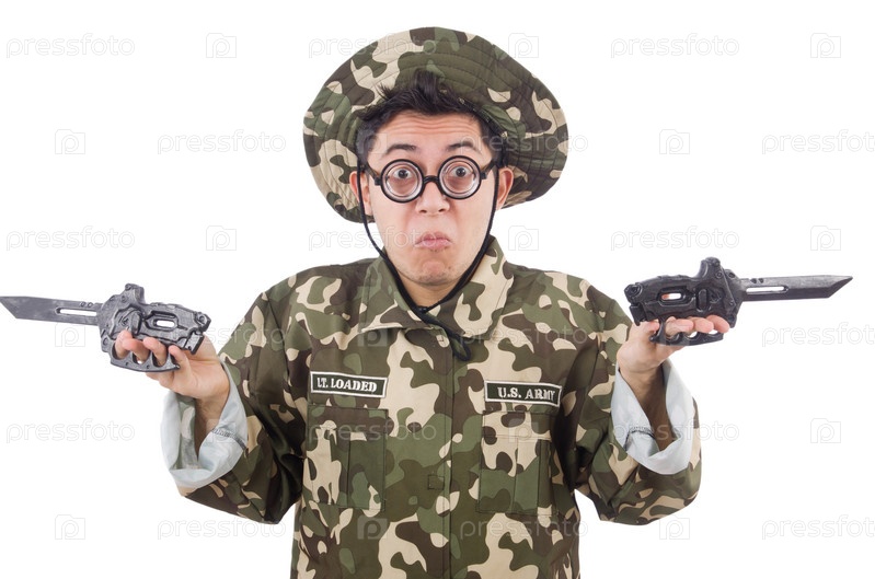 Смешной солдат с ножом