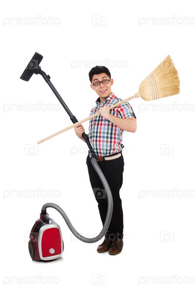 Мужчина с пылесосом и веником