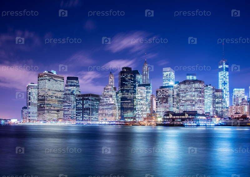 Ночная панорама Манхэттена, Нью-Йорк, США