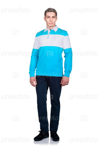 Мужчина в модной одежде на белом фоне