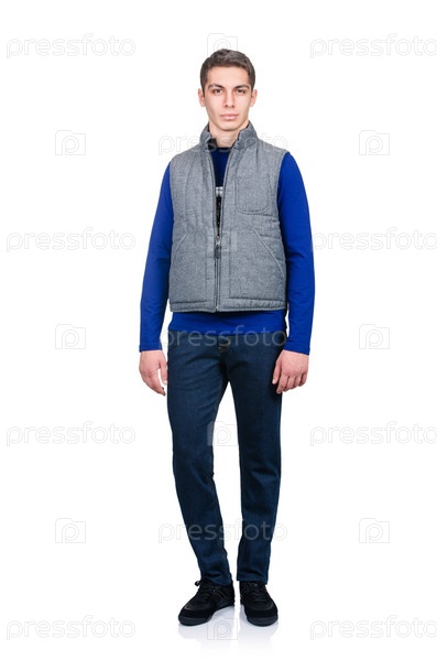 Мужчина в модной одежде на белом фоне