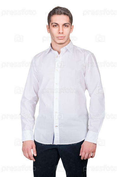 Мужчина в модной одежде на белом фоне