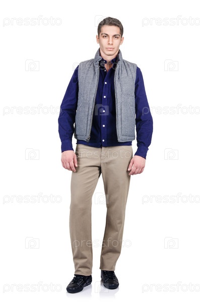 Мужчина в модной одежде на белом фоне