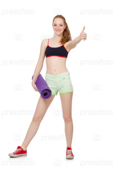 Женщина делает упражнения на белом фоне