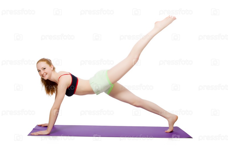 Женщина делает упражнения на белом фоне