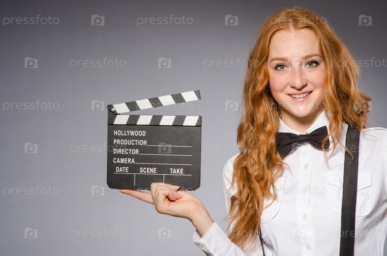 Молодая женщина с кинохлопушкой