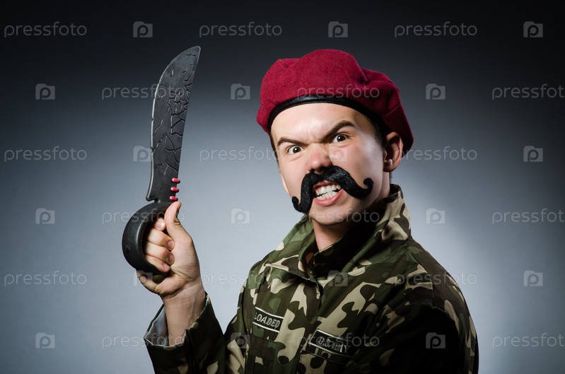 Смешной солдат на темном фоне