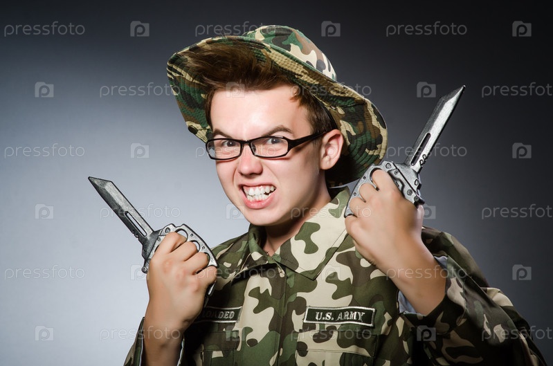 Смешной солдат на темном фоне