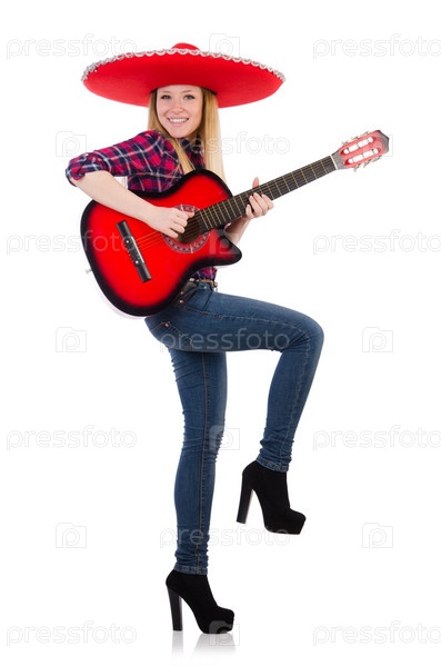 Женщина в сомбреро с гитарой