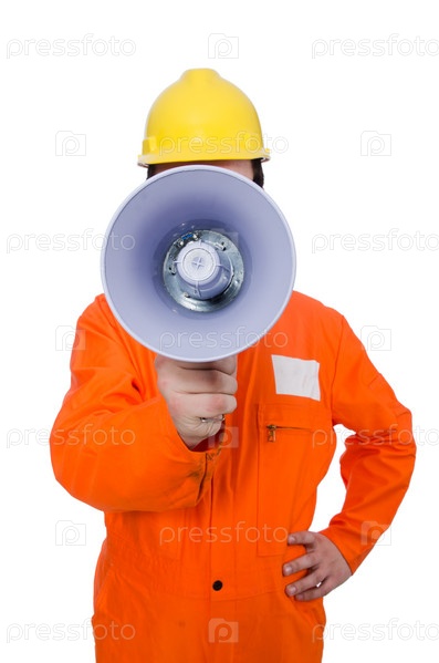 Строитель с громкоговорителем