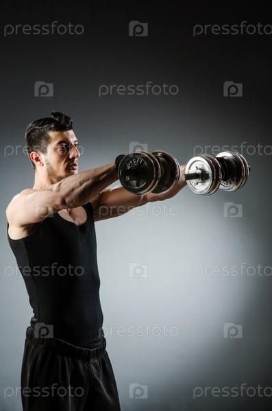 Культурист с гантелями