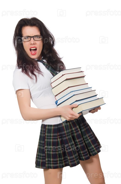 Смешной студент со стопкой книг