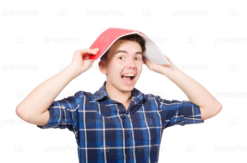 Смешной студент со стопкой книг