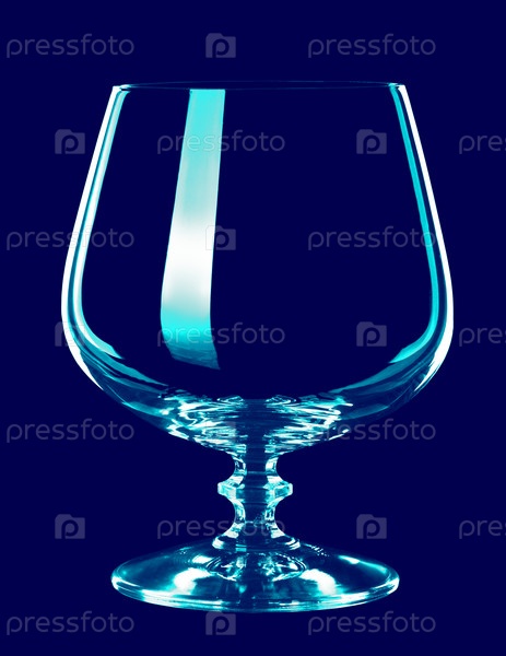 Стеклянный бокал на синем фоне