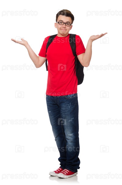 Смешной студент со стопкой книг