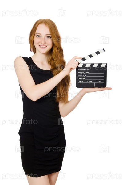 Молодая женщина с хлопушкой
