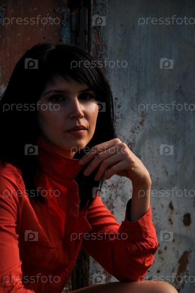 Девушка позирует у разрушенного здания