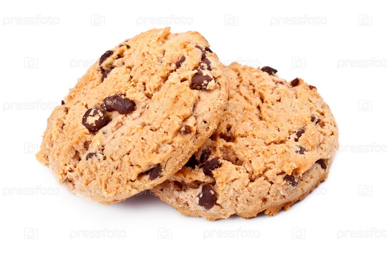 Овсяные шоколадные печенья на белом фоне