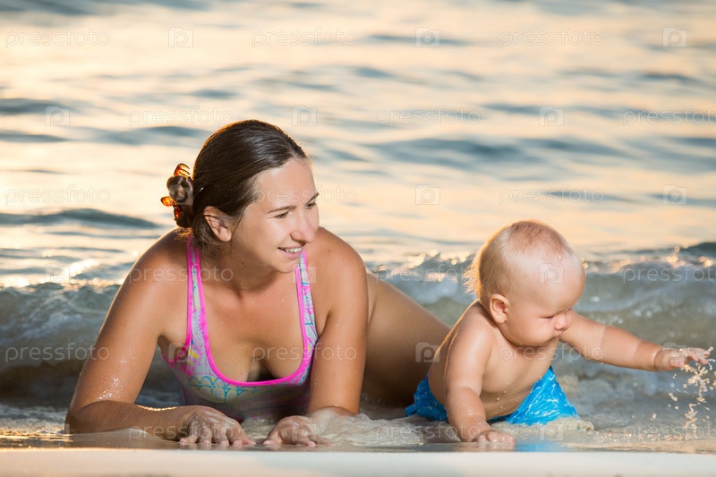 Ребенок с матерью на пляже