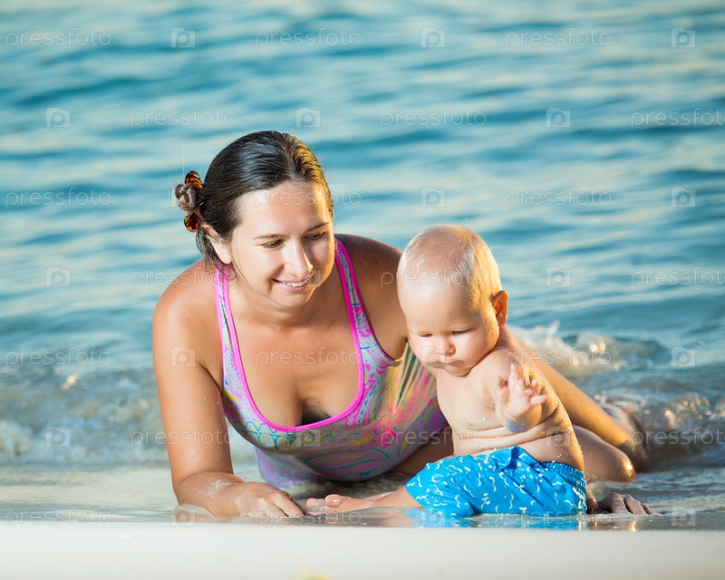 Ребенок с матерью на пляже