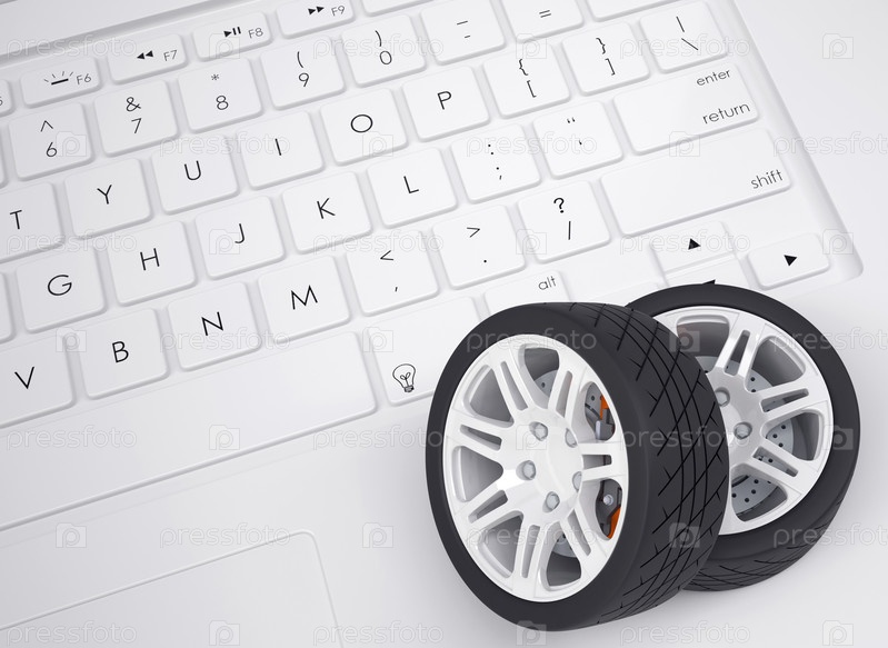 Колеса автомобиля на клавиатуре