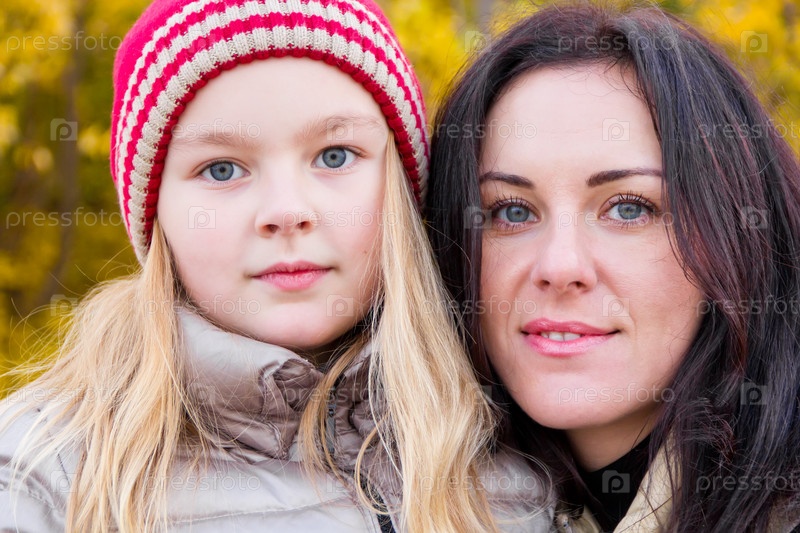 Мать и дочь в осеннем парке