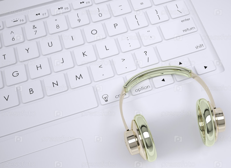 Металлические наушники на клавиатуре