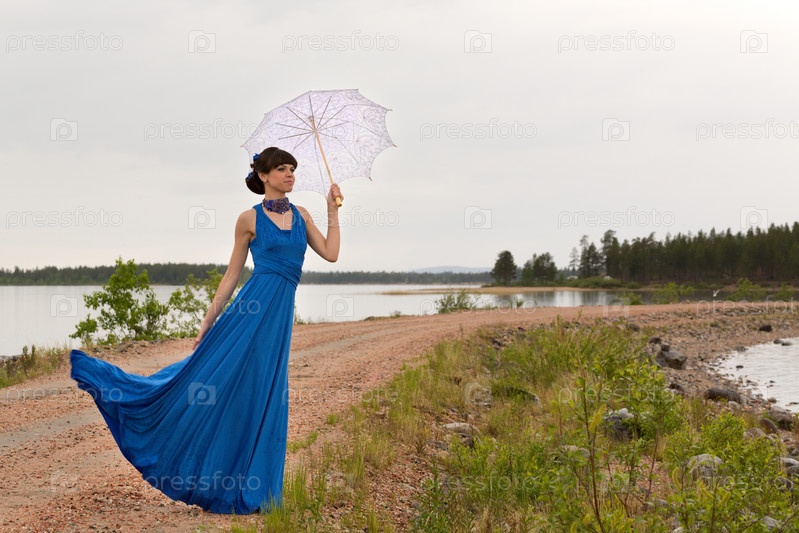 Девушка с зонтом на свежем воздухе