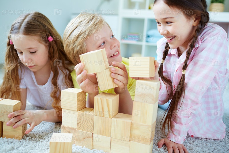 Дети играют в кубики