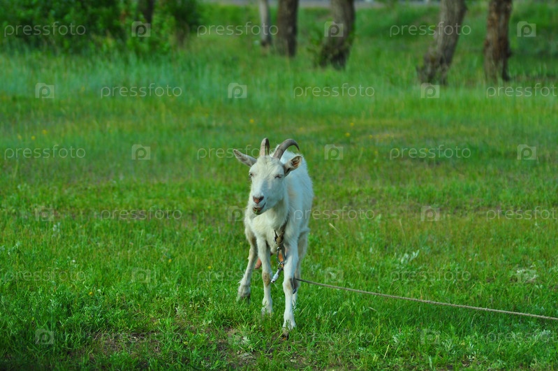 Белая коза на привязи