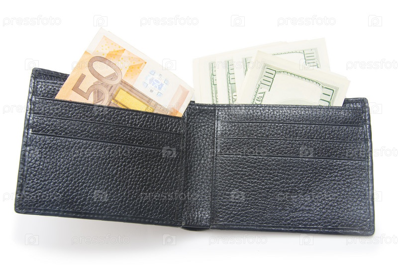 Кожаный бумажник с деньгами