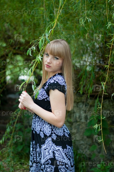Красивая девушка позирует на улице