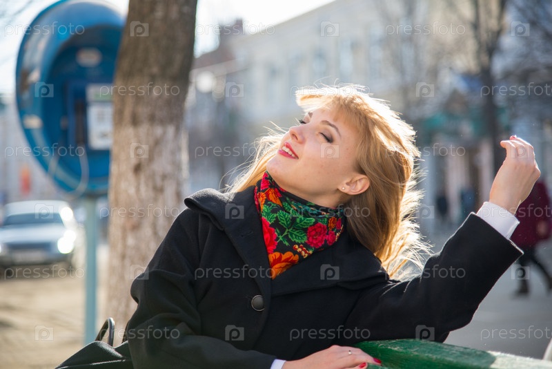 Красивая девушка позирует на улице