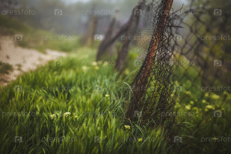 Железный забор в траве