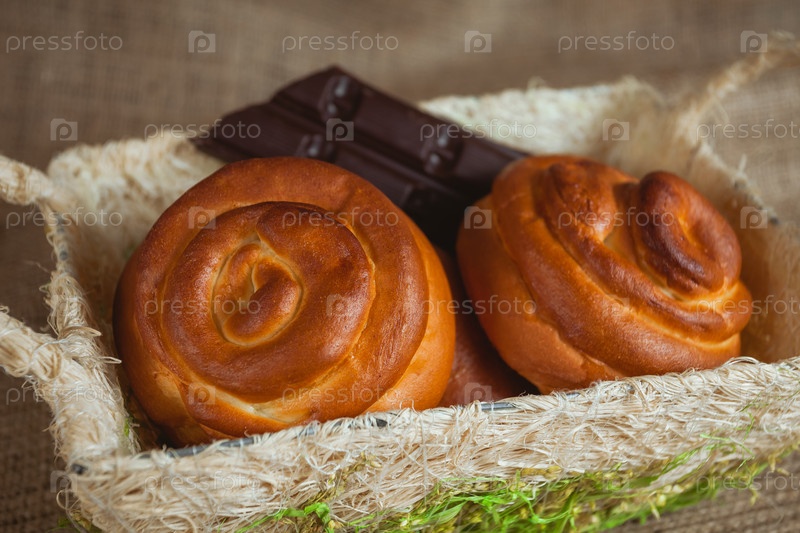 Несколько булочек в корзине
