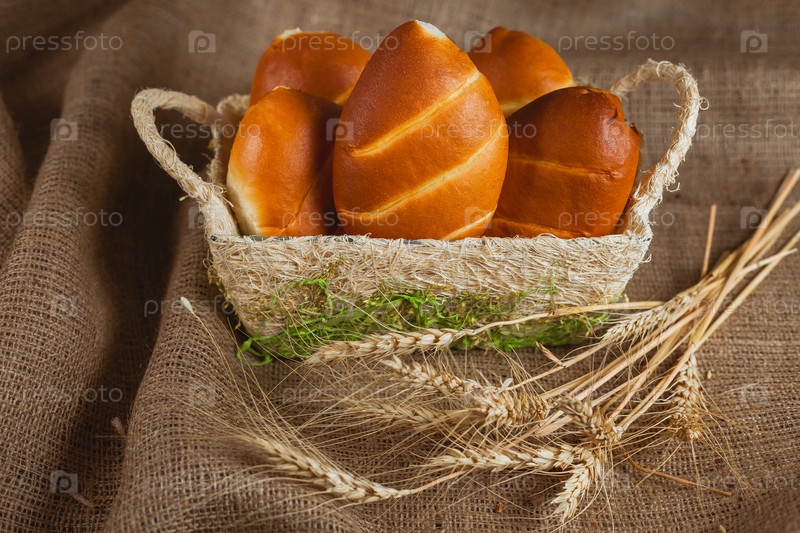 Несколько булочек в корзине