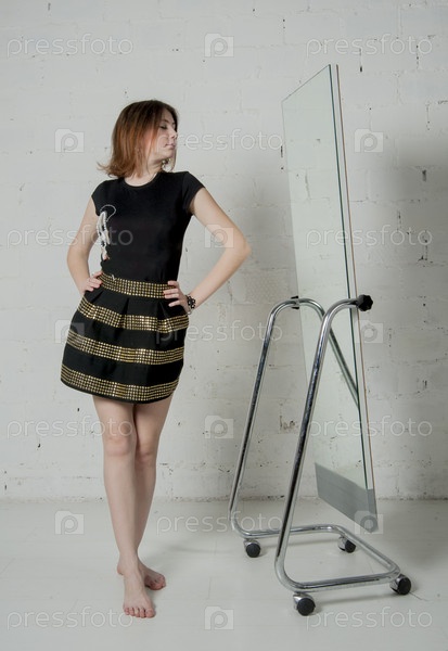 Женщина меряет платье