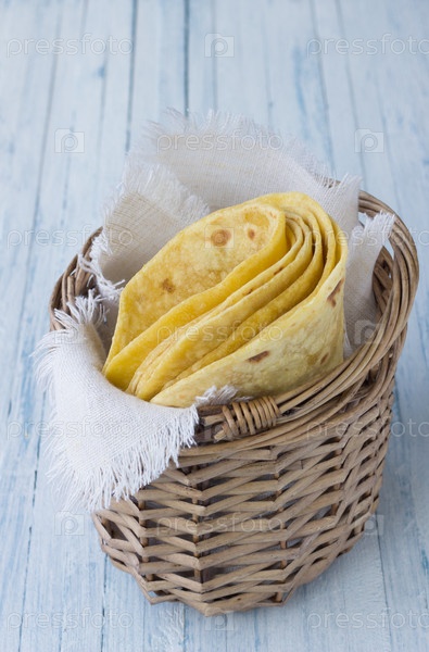 Лепешки в плетеной корзине