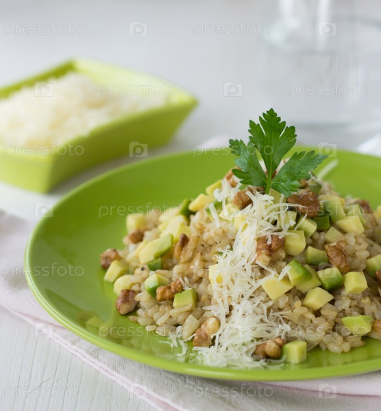 Ризотто с авокадо и грецкими орехами